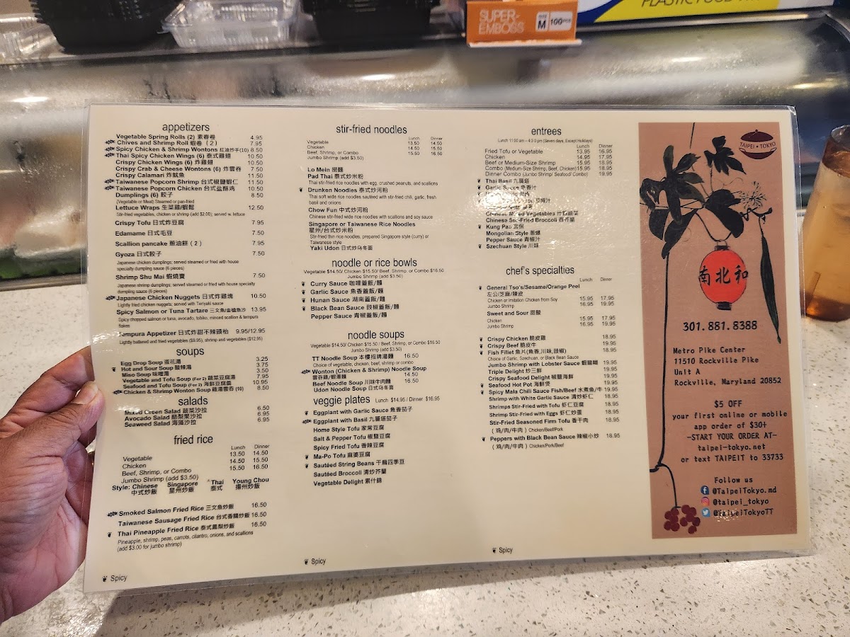Stir-fried thin rice noodles, prepared Singapore-style (curry) or Taiwanese-style.