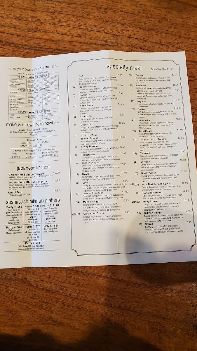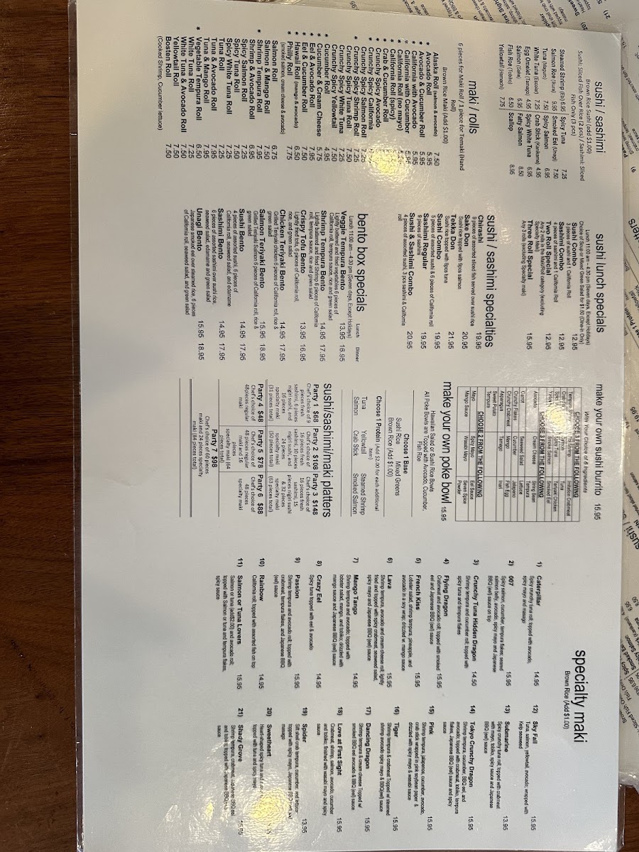 Chefs choice of 9 pieces fresh sashimi, 6 pieces nigiri sushi, and 16 pieces specialty maki. 31 pieces total.